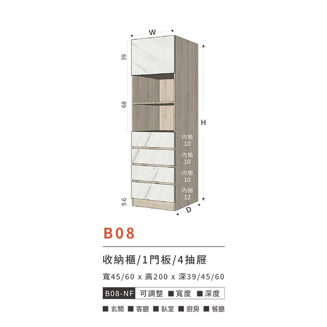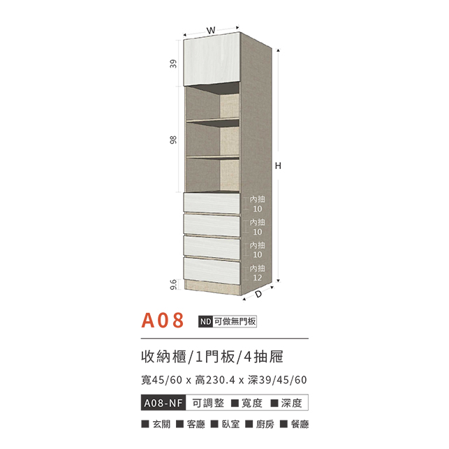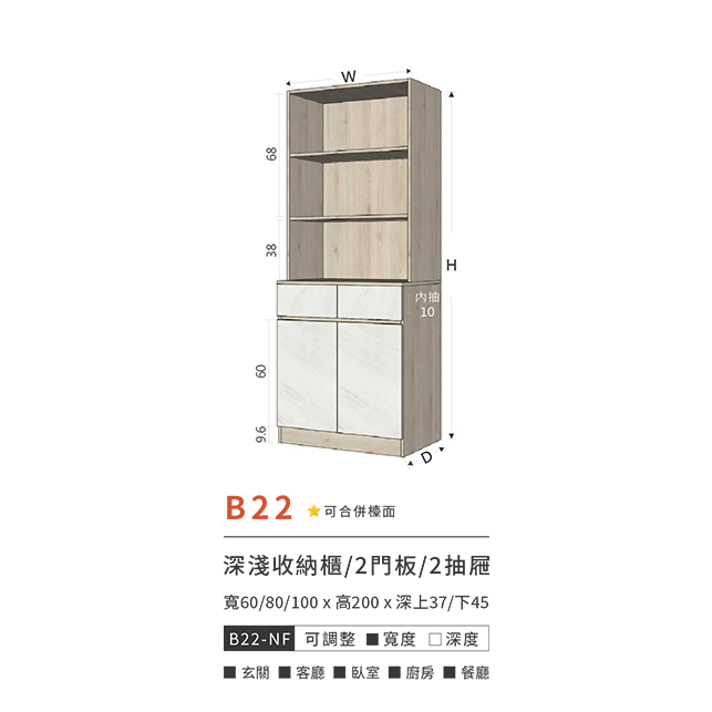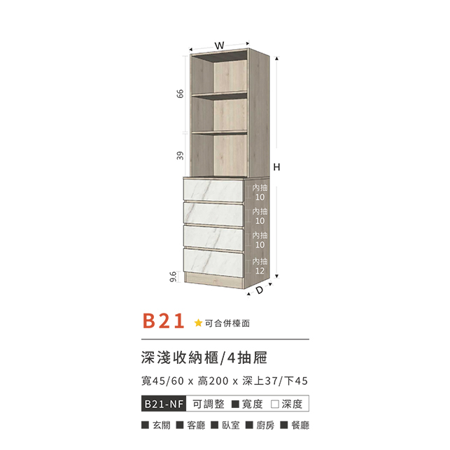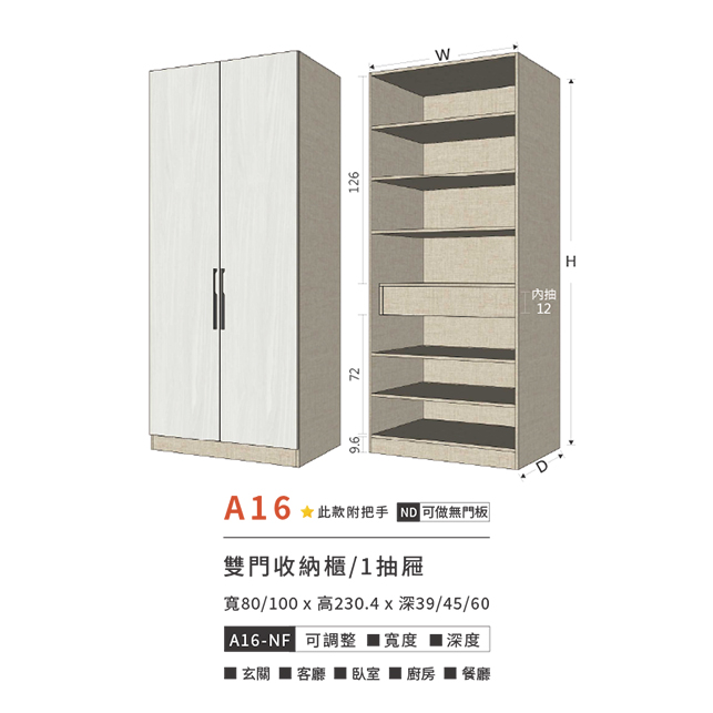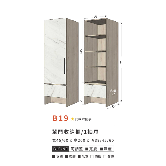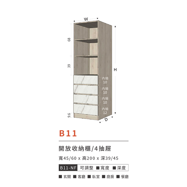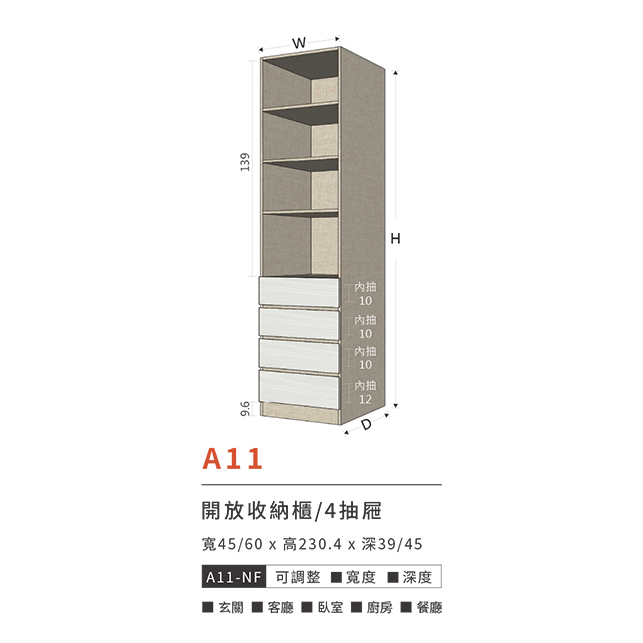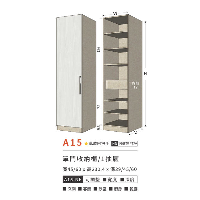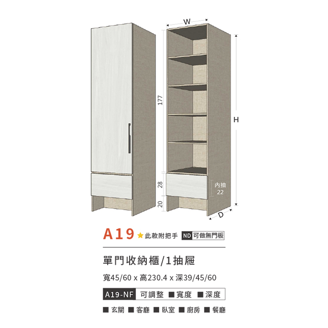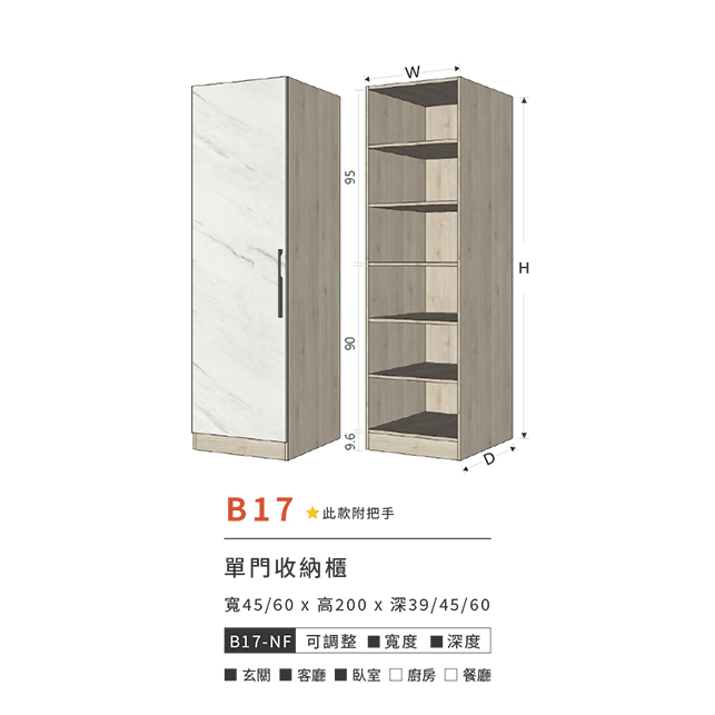 我們擁有豐富的收納系統櫃組合,您可以自由搭配專屬您的收納系統櫃,滿足您任何居家的風格!
