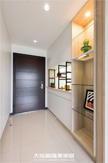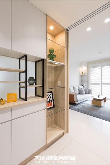 設計上刻意保留穿透性的光影, 讓玄關不只是入口,而是通往公領域的一段漂亮過場, 自然銜接客廳與餐廳,使視覺不被切割。